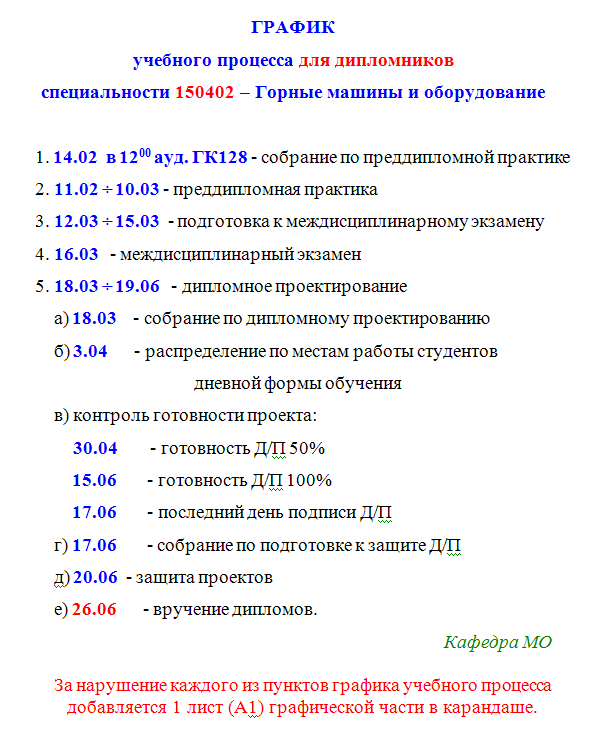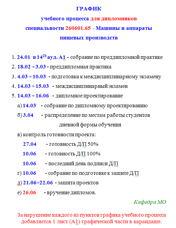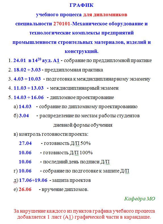 Объявление: графики учебного процесса для дипломников всех специальностей кафедры