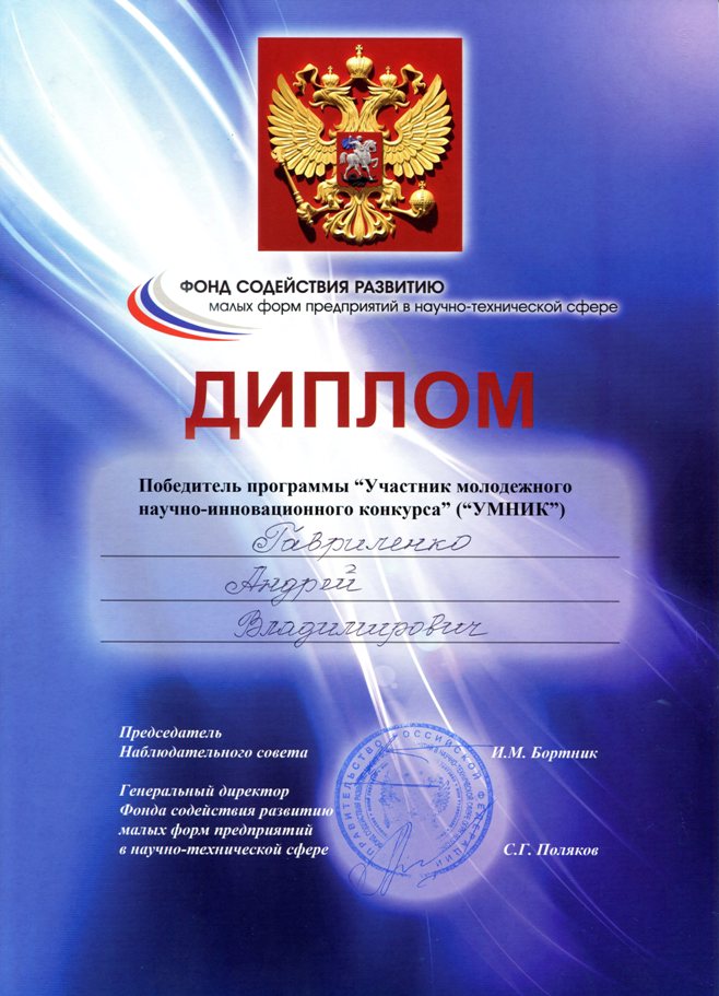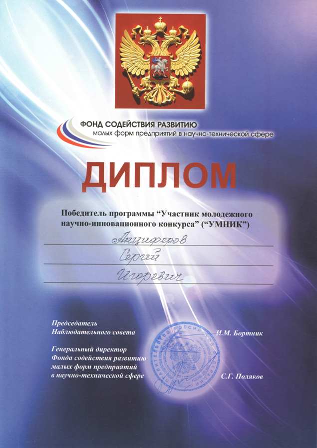 Поздравляем победителей программы У.М.Н.И.К. (Участник молодежного научно-инновационного конкурса) Анциферова Сергея "Разработка новой конструкции планетарного смесителя" и Гавриленко Андрея "Разработка новой конструкции аэрационного устройства пневмокамерных насосов".